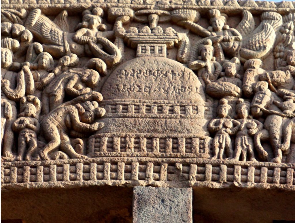 ในกาลต่อมาหลายร้อยปี จะกล่าวถึงพระเจ้าอโศกผู้ช่วงชิงราชสมบัติพระเชษฐาได้สำเร็จ เมื่อหลังเสวยราชสมบัติ ก็ทรงมีความศรัทธาในพุทธศาสนา ทรงมีพระประสงค์จะสร้างพระสถูปบรรจุพระสารีริกธาตุทั่วจักรวรรดิของพระองค์ ตามความใน คัมภีร์ทิวยาวทาน อโศกาวทาน นำเสนอจาก ฉบับ Sahitya Akademi, 1963. ความว่า